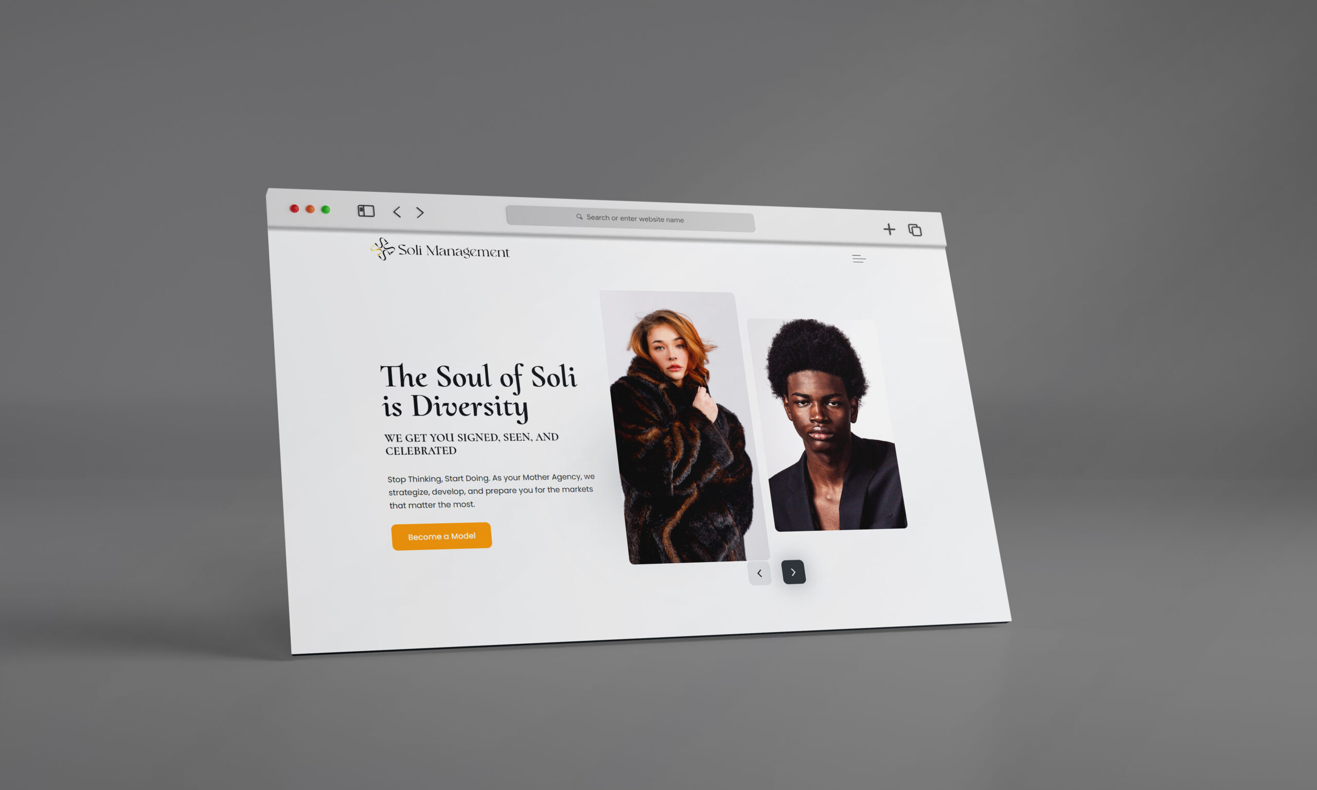 Soli Management required a digital platform that could present its brand with clarity, elegance, and efficiency while supporting global outreach. The goal was to design a website that was visually minimal yet technically powerful, capable of managing models, registrations, and data through a streamlined and secure backend system.